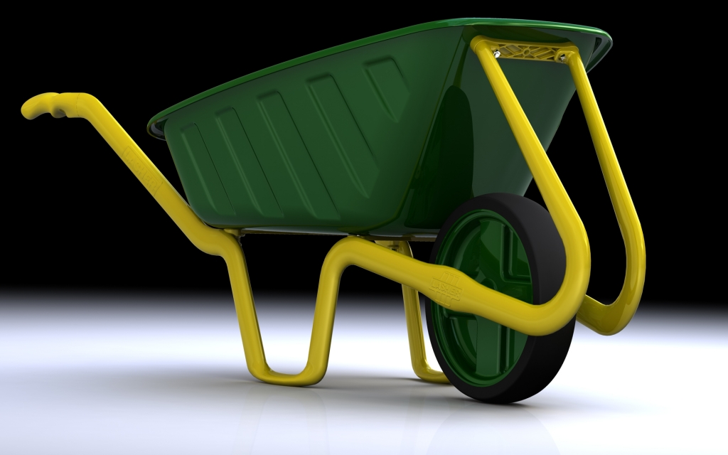Die Schubkarre besteht aus zwei Basisträgern die mit der Wanne und dem Rad verschraubt sind.